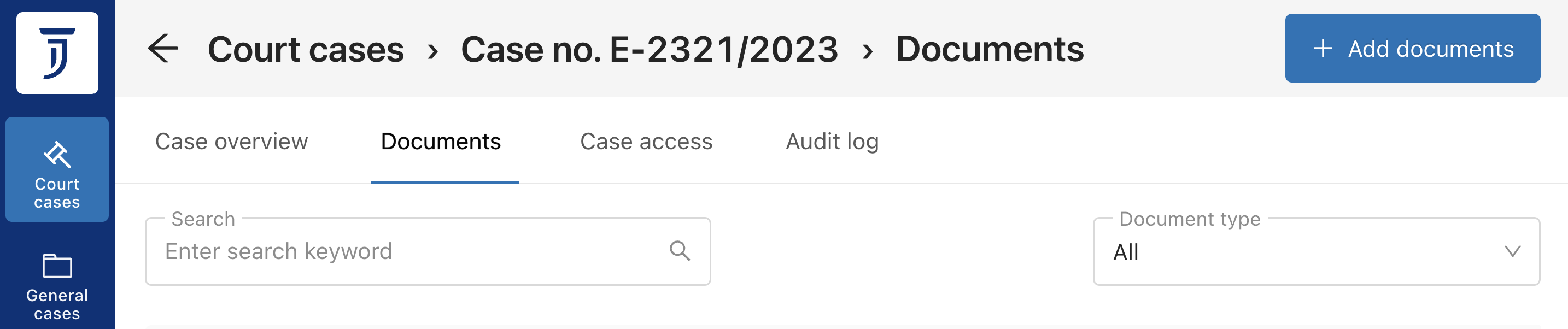 - Once you’ve selected the case from the "My Cases" overview and opened it, navigate to the “Documents” tab at the top of the page. This section provides an overview of all documents submitted in the case so far.